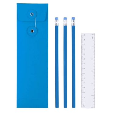 Impresión sobre los lápices y la regla, con la misma personalización.