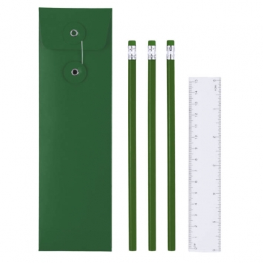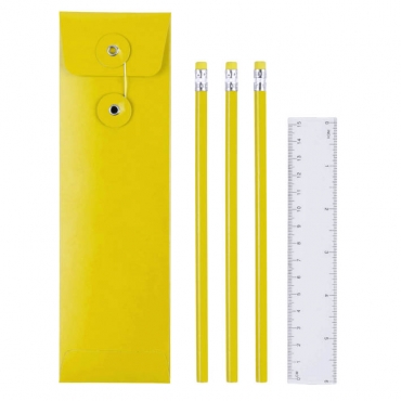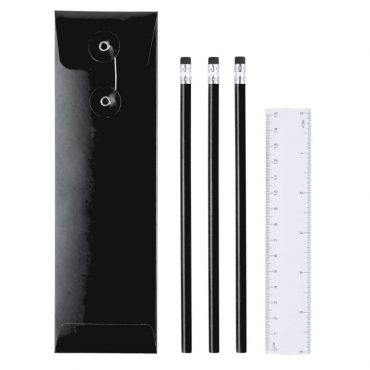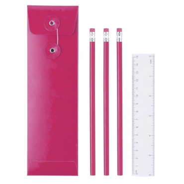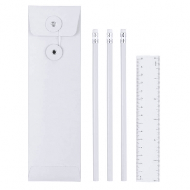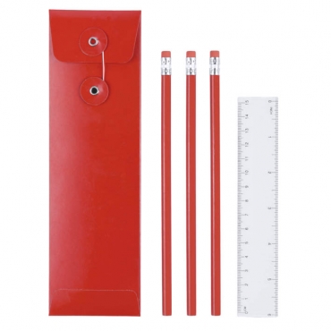 Impresión sobre los lápices y la regla, con la misma personalización.