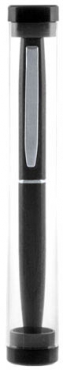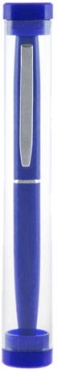 Material: metálico. Color de la tinta: azul. Área de impresión: 40 x 6 mm Técnica de impresión: digital a todo color. Envase incluído: estuche tubo acrílico transparente a juego.