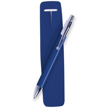 Material: metálico. Color de la tinta: azul. Área de impresión: 50 x 6 mm Técnica de impresión: digital a todo color. Cartucho: Jumbo Envase incluído: funda de polipiel a juego
