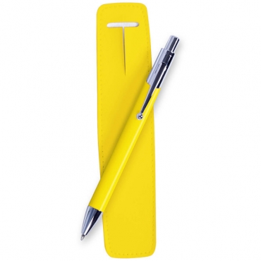 Bolígrafo metálico para personalizar con tu nombre o logo. De 6 alegres colores a elegir (negro, azul, rojo, amarillo, verde, blanco) y de mecanismo pulsador.